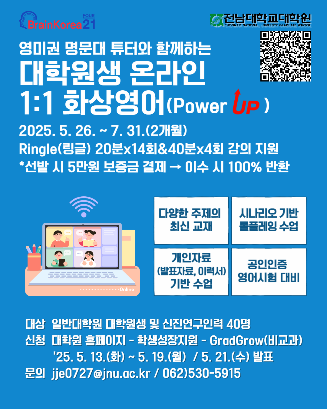 대학원생 온라인 1:1 화상영어 (국제역량 POWER UP) |