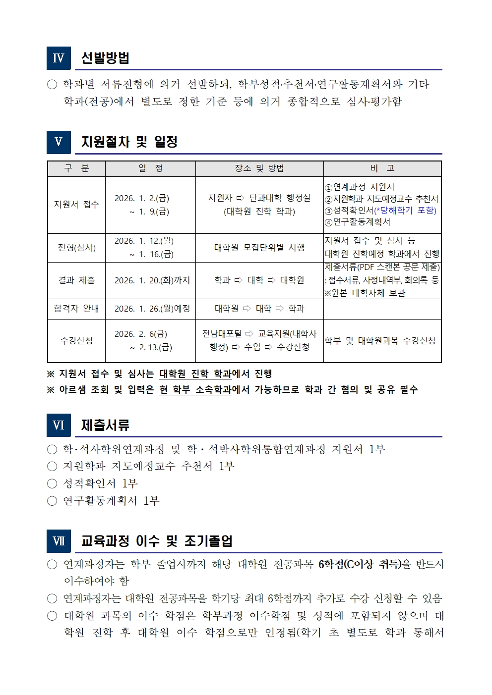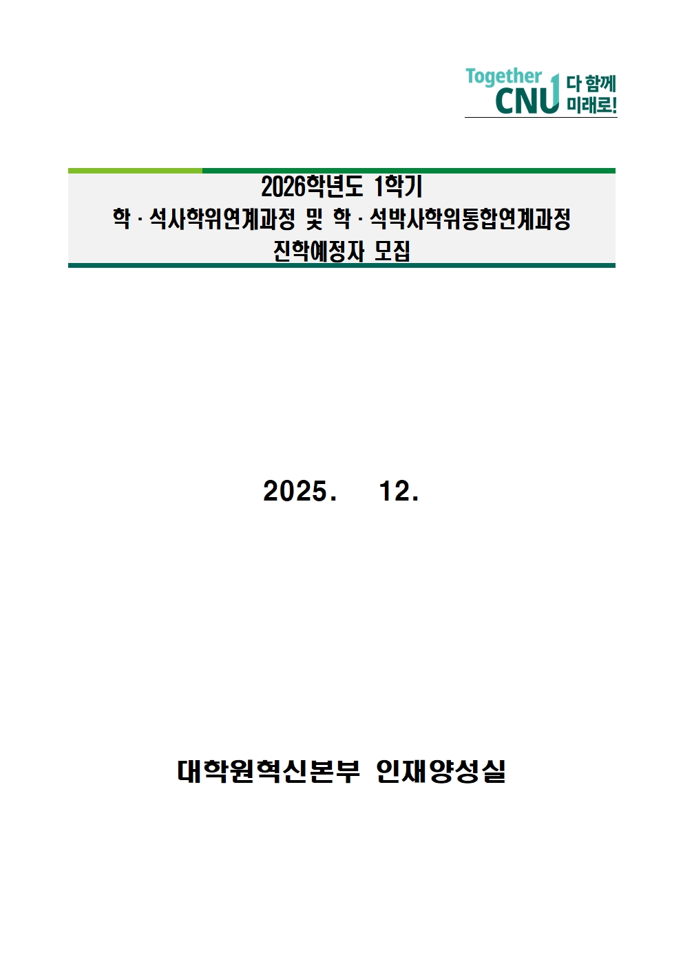 2026학년도 1학기 학.석사학위연계과정 및 학.석박사학위통합연계과정 진학예정자 모집