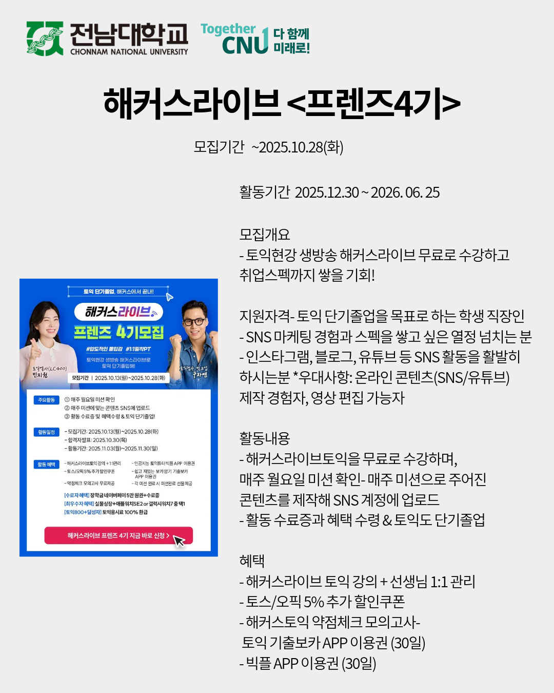 2025년 10월 4주 취업서포터즈 교외 프로그램 홍보